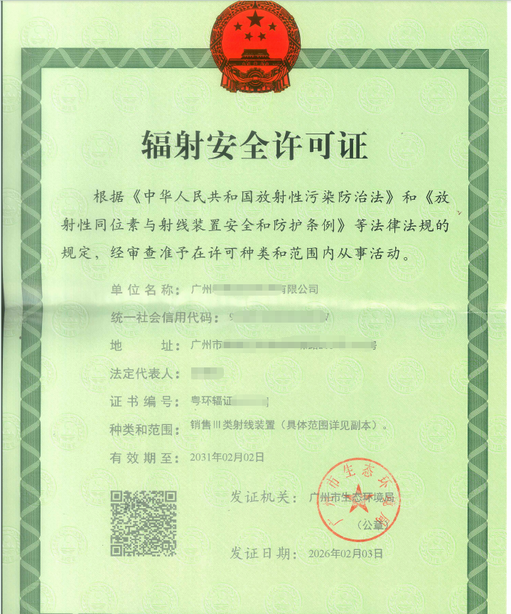 辐射安全许可证是由生态环境主管部门颁发,用以证明单位或个人具备从事放射性同位素与射线装置生产、销售、使用等相关活动安全条件的法定凭证。凡是生产、销售、使用放射性同位素和射线装置的单位,都必须按照规定取得辐射安全许可证,未取得许可证的单位,一律不得开展相关活动。
