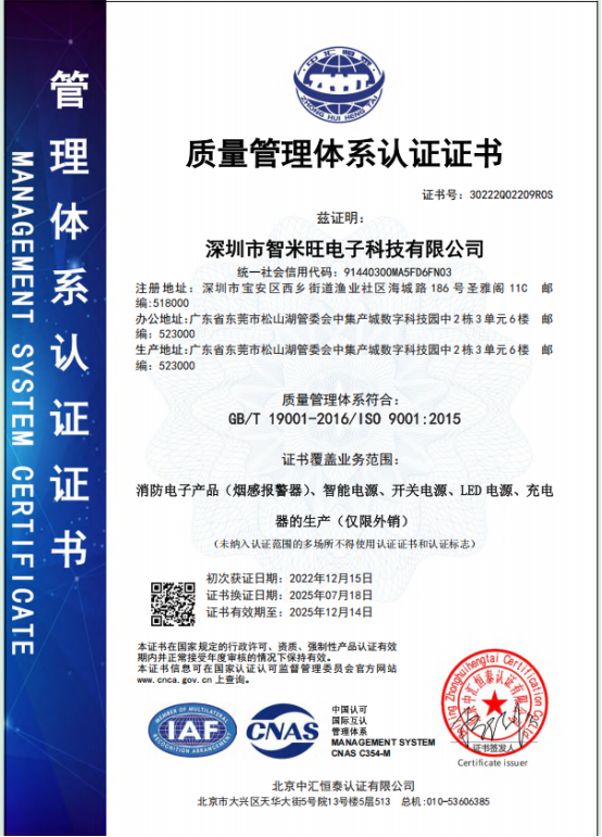 祝贺深圳智米旺取得质量和环境管理体系认证